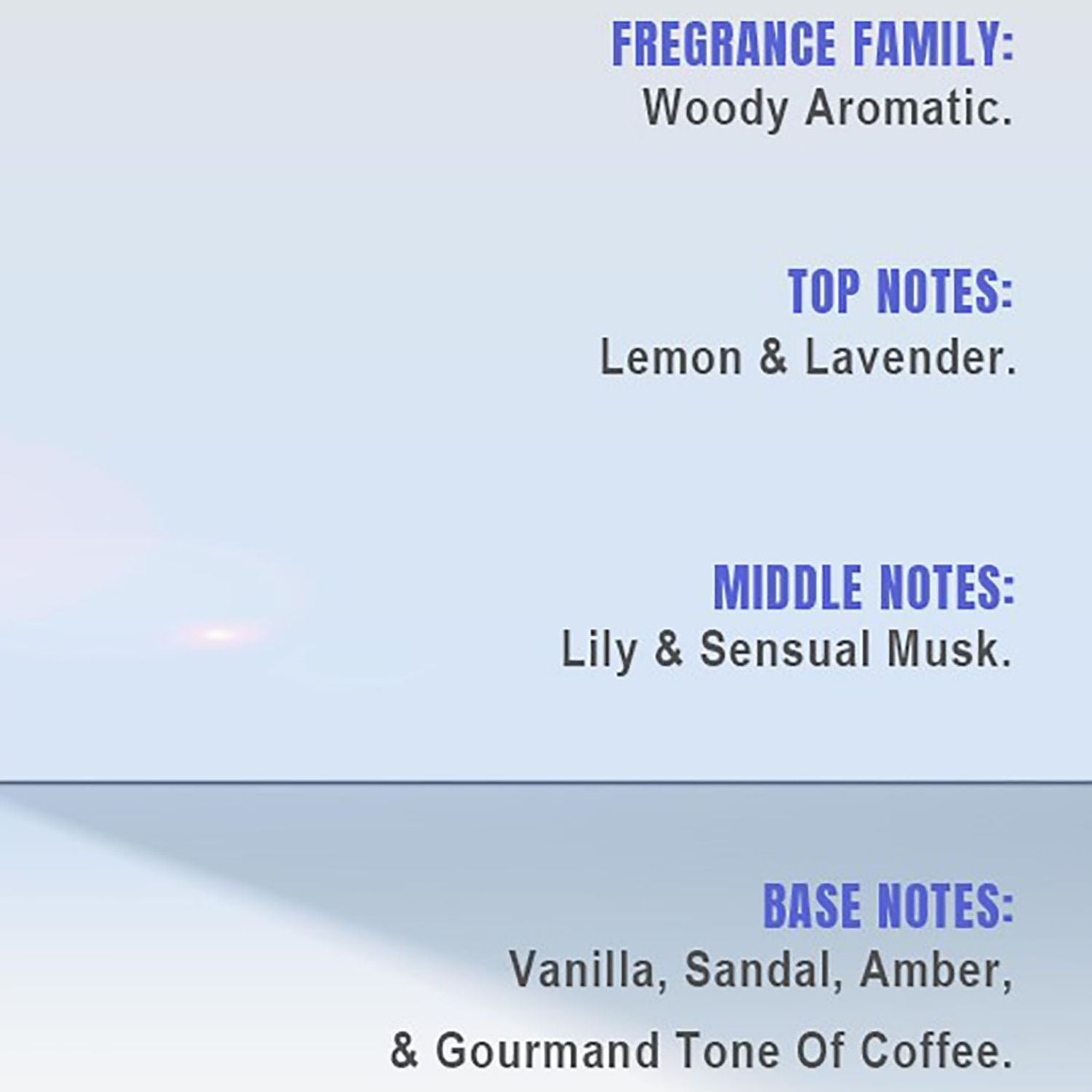 | BASE NOTES | Oakmoss Ambergriss, Cedar, Patchouli |